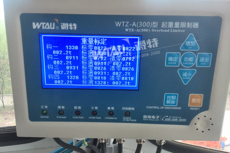 閔行貨場40.5T集裝箱門機配備的微特電子WTZ-A300型超載限制器,擁有實時監(jiān)控、動態(tài)顯示、聲光報警、數(shù)據(jù)備份、斷電記憶以及密碼保護等功能,且儀表本身設(shè)計具有抗干擾性強,操行界面友好,通用性強等優(yōu)點。