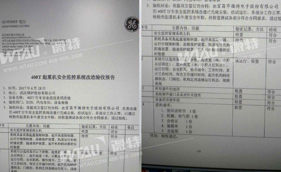 武漢鍋爐股份有限公司前身為始建于1954年的武漢鍋爐廠,2015年通用電氣完成對(duì)阿爾斯通電力與電網(wǎng)業(yè)務(wù)的收購(gòu),武漢鍋爐股份有限公司正式成為GE發(fā)電集團(tuán)蒸汽電力系統(tǒng)旗下的一員,公司具備研發(fā)、設(shè)計(jì)、生產(chǎn)600MW超臨界鍋爐,1000MW超超臨界鍋爐以及大型循環(huán)流化床鍋爐的能力,其400t橋機(jī)是在鍋爐生產(chǎn)過(guò)程中的核心起吊設(shè)備,具有噸位大,跨度大,起升高度高等特點(diǎn),出于起吊安全考慮,武鍋上下對(duì)此非常重視,經(jīng)過(guò)多方對(duì)比,考慮到微特電子自身的技術(shù)實(shí)力以及在市場(chǎng)上的口碑等多方因素,決定將此項(xiàng)目交由微特電子來(lái)做,最終微特公司不負(fù)期望,以高質(zhì)量的產(chǎn)品和服務(wù)贏得了武鍋相關(guān)領(lǐng)導(dǎo)和特檢院的贊許。