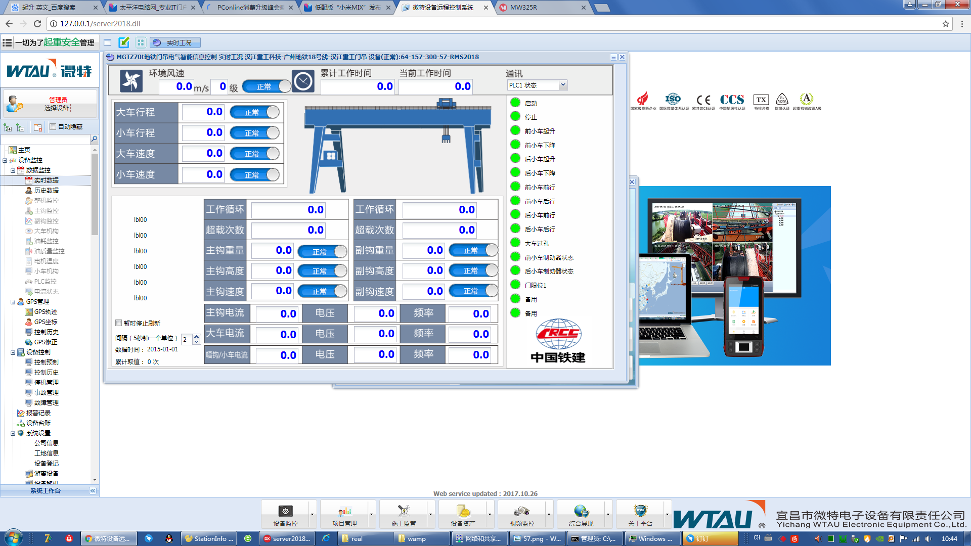 MGTZ70t地鐵門吊電氣智能信息控制系統(tǒng),包含門吊數(shù)據(jù)監(jiān)控和視頻監(jiān)控兩部分。實現(xiàn)門吊使用過程中全方位的數(shù)據(jù)監(jiān)控和關(guān)鍵部位的視頻圖像監(jiān)控以及以上數(shù)據(jù)和圖像的存儲等功能??蓪崿F(xiàn)遠程PC電腦實時遠程查詢監(jiān)控,數(shù)據(jù)回放、曲線擬合等功能;可實現(xiàn)手機APP遠程實時查詢設(shè)備狀態(tài),數(shù)據(jù)抽取查詢等功能。