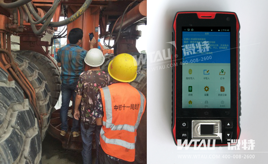 圖為微特售后服務工程師現(xiàn)場指導使用PDA點檢系統(tǒng)