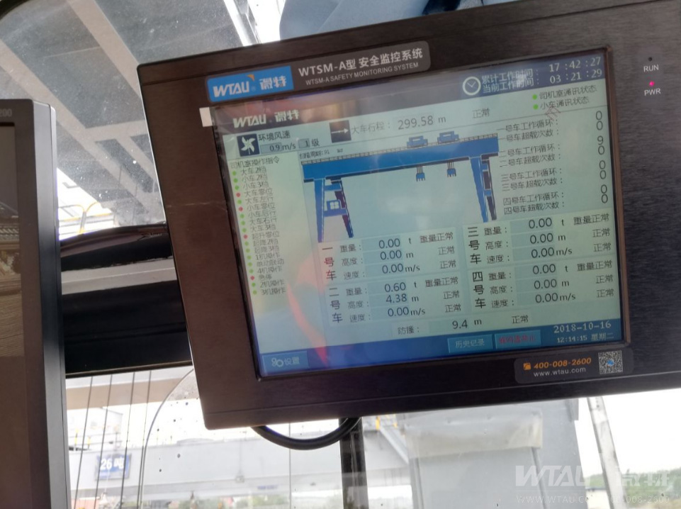 成都鐵路局石板灘焊軌基地龍門(mén)吊配裝微特技術(shù)有限公司的WTSM-A型安全監(jiān)控系統(tǒng)。