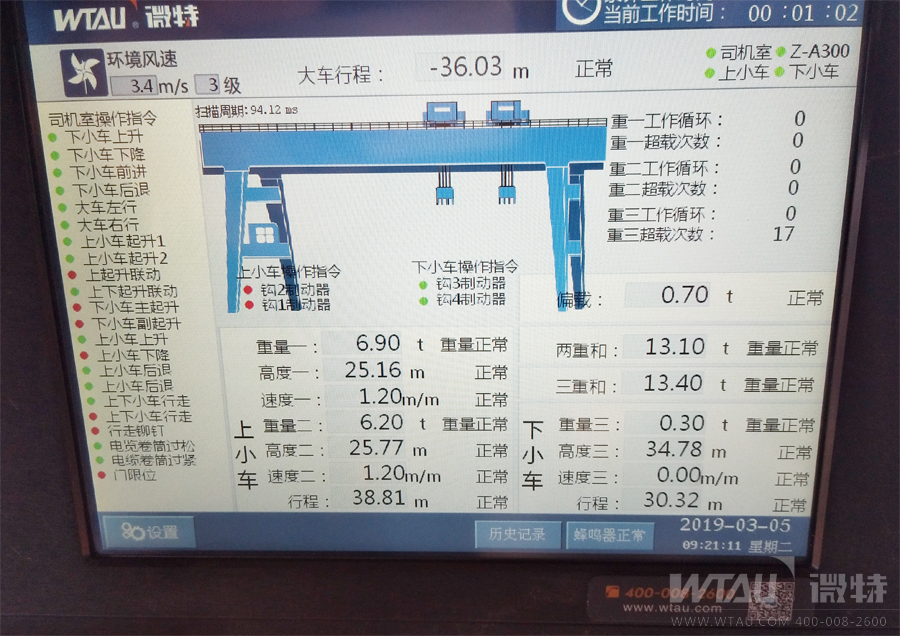 微特WTSM-A型龍門吊安全監(jiān)控系統(tǒng)具有實(shí)時(shí)監(jiān)控機(jī)械運(yùn)行狀態(tài)和操作行為,對(duì)設(shè)備可能出現(xiàn)的異常狀態(tài)、非正常操作等進(jìn)行聲、光報(bào)警,并全過程記錄,保證機(jī)械設(shè)備的安全、穩(wěn)定運(yùn)行,減少安全事故發(fā)生,便于事故追溯,提高安全管理水平。