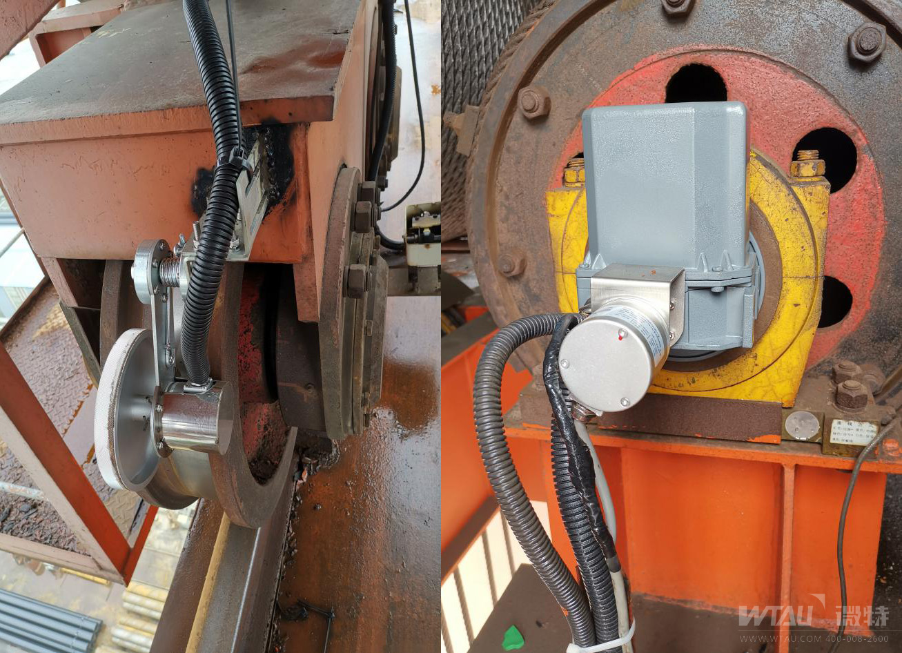 上下小車及大車行程采用計程輪的方式采集其數(shù)據(jù),高度采用多功能行程限位器加編碼器的方式采集其高度數(shù)據(jù)。同時采集其速度等相關(guān)數(shù)據(jù),使操作人員可以通過直觀的數(shù)據(jù)變化觀察其大小車的位置,每個鉤的高度等相關(guān)數(shù)據(jù),為設(shè)備的安全運行提供更加安全的保障。