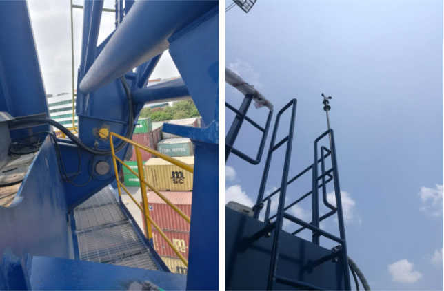 微特此次與中藝重工合作主要是為新裝固定式門座機安裝力矩限制器,在經(jīng)過項目前期的溝通洽談確定安裝方案后,微特售后工程師奔赴中山在現(xiàn)場人員配合下進行儀表的安裝調(diào)試工作。