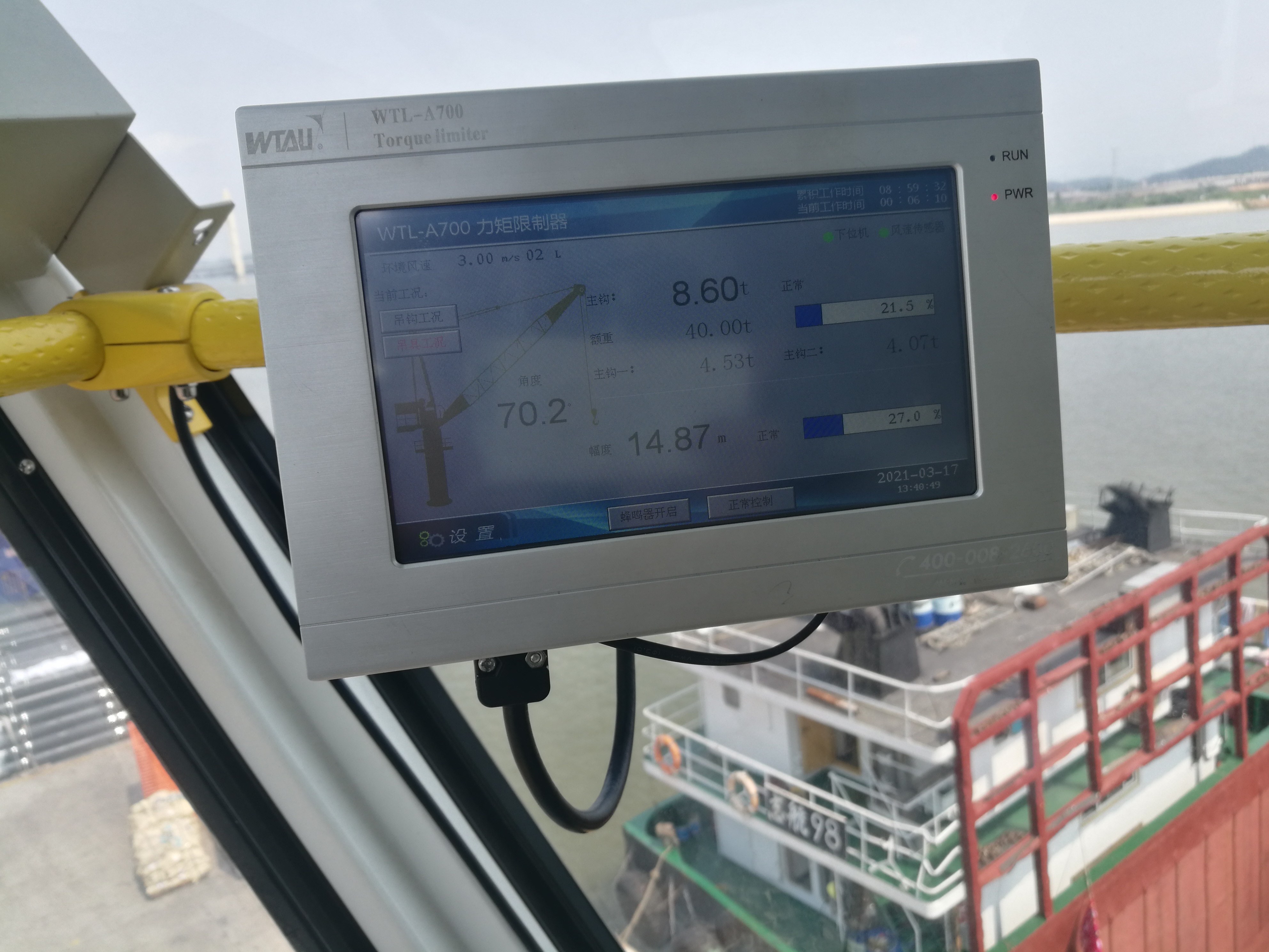此次為廣東中藝固定式門座機配備的新WTL-A700力矩限制器就是微特主要針對固定式門座機研發(fā),生產(chǎn)的一款實用性非常強的儀表,采用觸摸屏屏顯示,用于四路以下重量信號和一路角度一路風速信號的監(jiān)控。