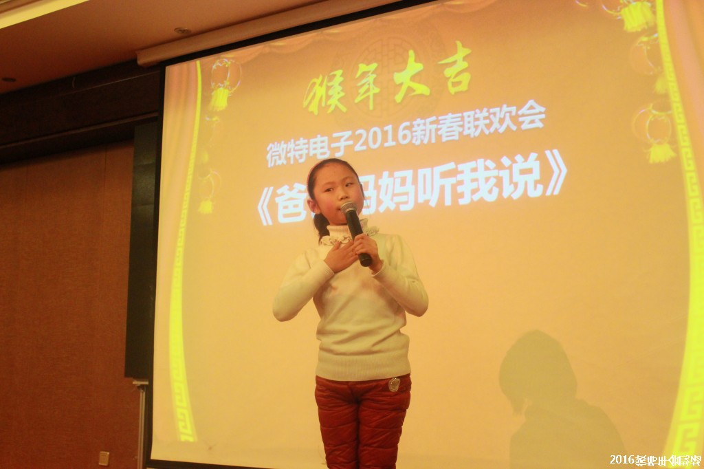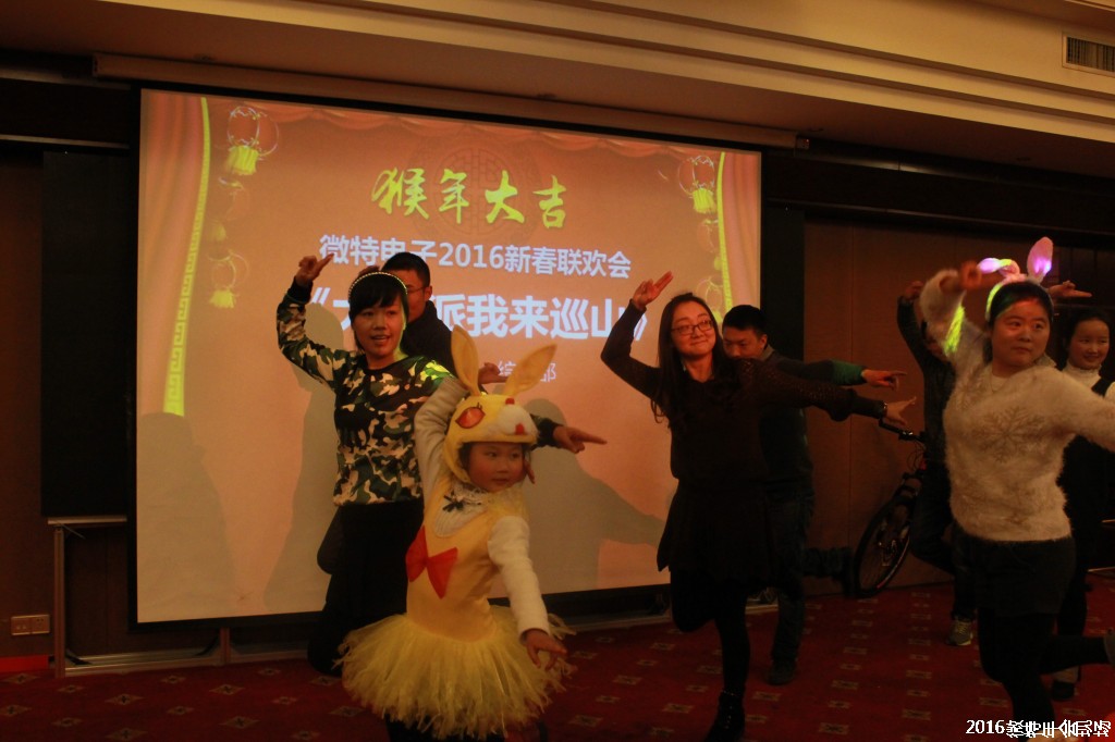 1月30日,微特電子全體同仁及其家屬共同參與了隆重的迎新年活動。當天,精彩活動持續(xù)不斷,在微特廠區(qū)大家一起玩趣味游戲、PK大戰(zhàn)。在金德瑞酒店大家齊聚一堂,共賀猴年新春。一起渡過了一個歡樂的節(jié)日。