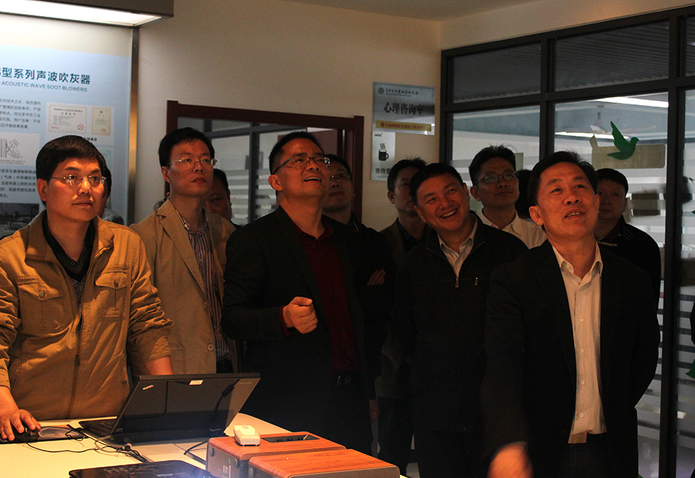 峽峰電子公司負(fù)責(zé)人嚴(yán)總向郭主席一行介紹公司產(chǎn)品
