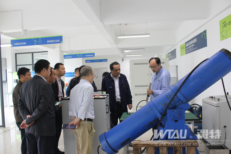 在微特投建的湖北省智能吊裝設(shè)備研發(fā)檢測(cè)中心,技術(shù)總監(jiān)高鈺敏詳細(xì)向張總一行介紹了檢測(cè)中心的設(shè)備與使用情況。張總對(duì)微特投入這些全新的檢測(cè)實(shí)驗(yàn)設(shè)備用于研發(fā)和保障產(chǎn)品品質(zhì)表示贊賞。當(dāng)看到正在做深水實(shí)驗(yàn)的穿銷(xiāo)就位傳感器時(shí),清江公司張總一行對(duì)此都特別感興趣,微特電子高總特地對(duì)新研發(fā)的就位傳感器作了詳細(xì)的講解和說(shuō)明。
