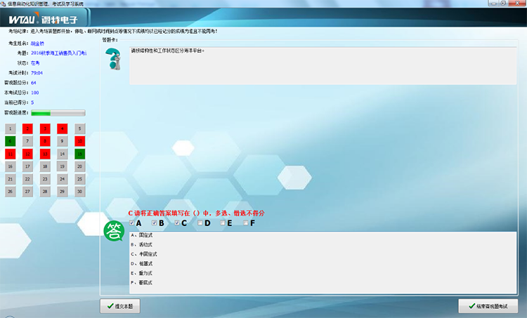 軟件推出后,微特將全面實現(xiàn)考試工作的網(wǎng)絡化、自動化。既可以方便公司業(yè)務銷售部門對組員的銷售及售后維護的知識的管理,又可快速掌握組員的業(yè)務知識水平,有針對的進行相關知識的教學,又能減輕公司人事部門的監(jiān)考及閱卷負擔。倍受公司業(yè)務與行政的喜愛。