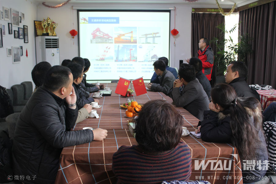 參觀結(jié)束后,參會領(lǐng)導(dǎo)來到微特智慧谷創(chuàng)業(yè)咖啡廳進行技術(shù)交流會。中國電力建設(shè)企業(yè)協(xié)會裝備協(xié)作網(wǎng)秘書長王紅燕作主持發(fā)言,微特電子總經(jīng)理聶道靜致歡迎詞。微特電子市場總監(jiān)李彬和技術(shù)總監(jiān)高鈺敏分別在會上向大家講解了微特電子近期案例以及在監(jiān)控系統(tǒng)在各種類型起重機上的技術(shù)應(yīng)用。