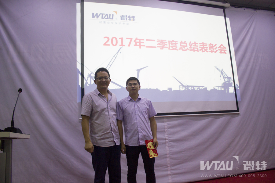 會議中,由微特電子副總經(jīng)理高鈺敏對公司第二季度大事件進行了回顧。在第二季度中,微特電子參加了中國冶金建設協(xié)會吊裝工作年會;先后參與了數(shù)次軍民融合會議及相關活動;正式核批海外分銷商并參與海外展會活動,同時培訓海外代理商工程師;幾家重要客戶參觀調(diào)研的情況;公司參與起草的國家標準GB/T31052.4-2017 《起重機械 檢查與維護規(guī)程 第4部分:臂架起重機》和國家標準GB/T31052.12-2017 《起重機械檢查與維護規(guī)程 第12部分:浮式起重機》正式發(fā)布并于2017年12月1日起正式實施以及公司愛心團隊資助的邱同學中考報捷的喜訊等。