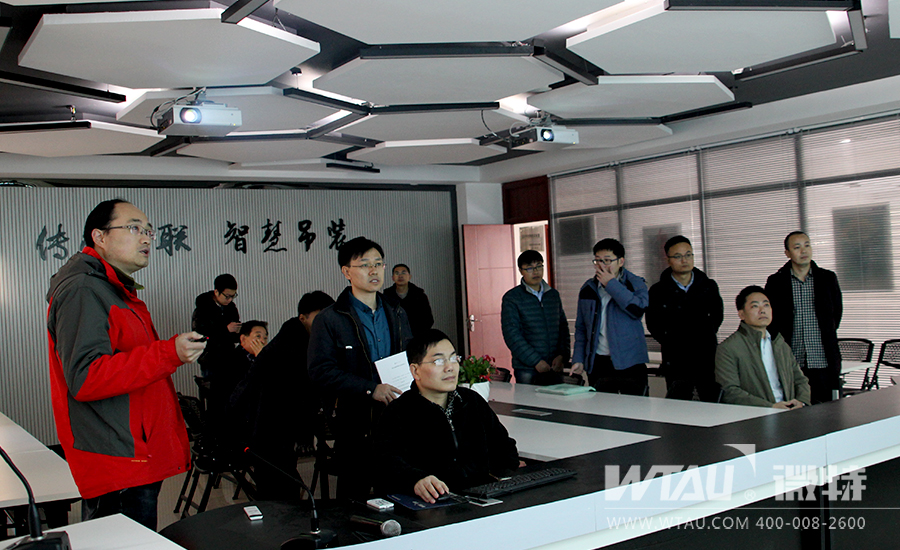 技術總監(jiān)高鈺敏向林院長一行介紹微特智慧吊裝監(jiān)控管理平臺,在介紹過程中林院長不時提問與高總交流平臺的管理作用和未來方向。