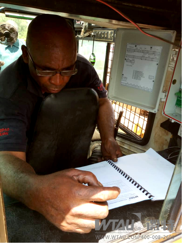 看!非洲兄弟帶著眼鏡在仔細(xì)研讀我們的WTL-A700型力矩限制器操作手冊