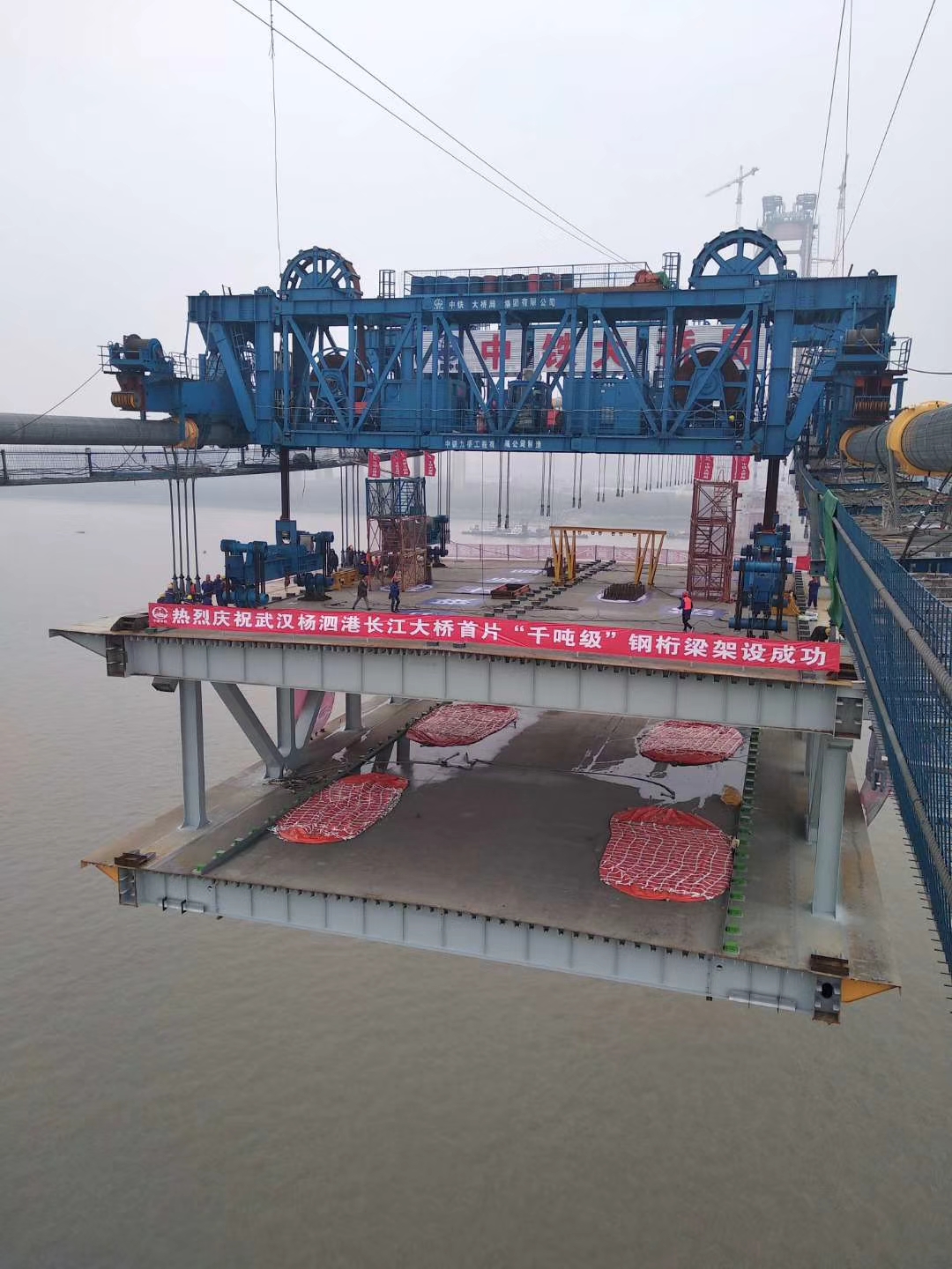 楊泗港長(zhǎng)江大橋主跨首個(gè)千噸級(jí)鋼梁架設(shè)成功