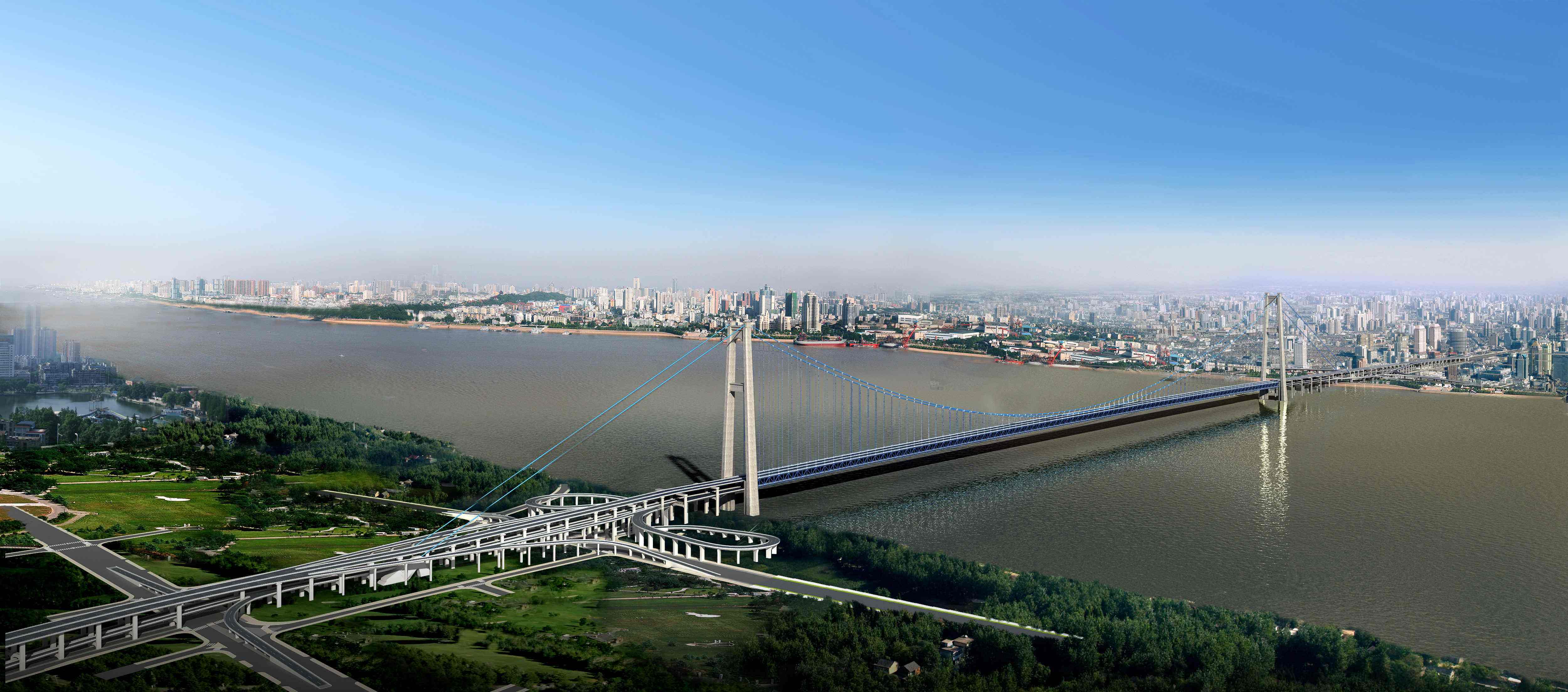 楊泗港長(zhǎng)江大橋位于武漢白沙洲大橋和鸚鵡洲大橋之間,起點(diǎn)設(shè)在漢陽(yáng)國(guó)博立交,從漢陽(yáng)漢新大道跨鸚鵡大道、濱江大道過(guò)江,武昌岸跨過(guò)八鋪街堤、武金堤后,止于八坦立交,連接武漢三鎮(zhèn)中的漢陽(yáng)區(qū)和武昌區(qū)。楊泗港長(zhǎng)江大橋總長(zhǎng)約4.32公里,是武漢第一座雙層公路橋,即上下兩層都走汽車,共12條汽車道,兩側(cè)設(shè)置觀光步行道。楊泗港大橋采取一跨跨越長(zhǎng)江的方案,跨度長(zhǎng)達(dá)1700米,是世界上工程規(guī)模最大的雙層懸索橋,其懸索橋跨度在國(guó)內(nèi)排名第一、世界排名第二。(來(lái)源:百度百科)