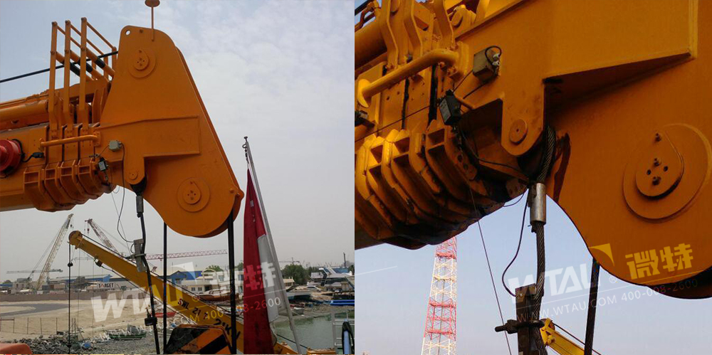 時光飛逝,轉(zhuǎn)眼來到2018年,微特在回訪阿聯(lián)酋客戶過程中,了解到客戶需要重新訂購 2套我們的WTL-A200型力矩限制器。原來由于客戶自己操作不當,把原有吊車上的2件傳感器拆掉安裝到了不匹配的吊車上導致傳感器損壞。而其它3臺力矩保護裝置仍然運行良好,無任何故障??蛻粽J可微特產(chǎn)品的質(zhì)量,溝通之后,客戶又重新訂購了2套新的力矩限制器。