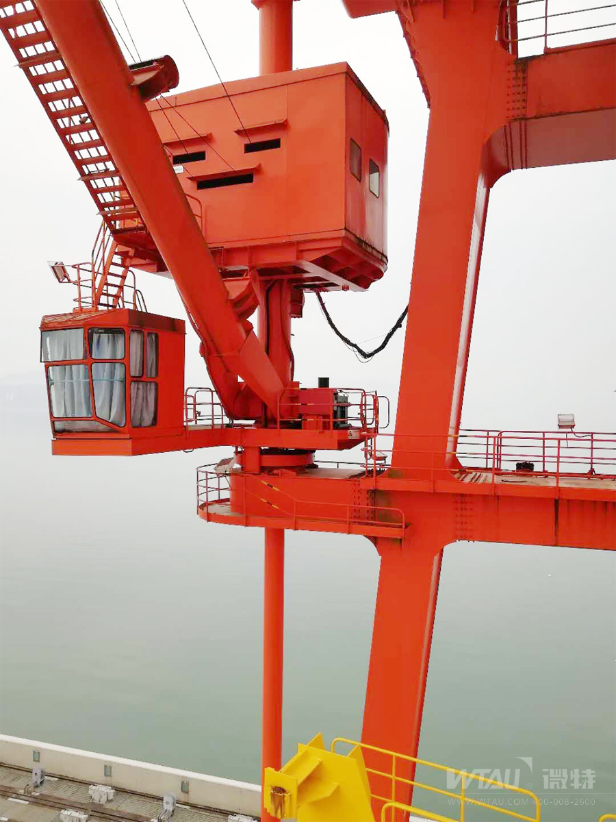 圖上的壩頂門機(jī)擁有四個(gè)駕駛室,微特在四個(gè)駕駛室分別安裝有監(jiān)控系統(tǒng)儀表及監(jiān)控視頻顯示器,從技術(shù)上實(shí)現(xiàn)四個(gè)駕駛室監(jiān)控主從分布,協(xié)同監(jiān)控。