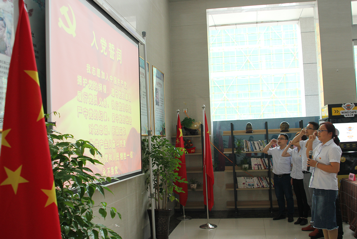會(huì)議開(kāi)始,由中共宜昌智能裝備創(chuàng)業(yè)聯(lián)盟第二支部書(shū)記楊英帶領(lǐng)微特全體黨員及預(yù)備黨員同志重溫入黨誓詞。