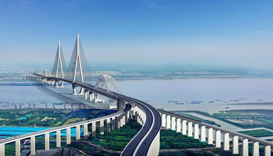 常泰長(zhǎng)江大橋位于泰州大橋與江陰大橋之間,主航道橋采用雙層斜拉橋方式。該項(xiàng)目創(chuàng)下三項(xiàng)世界第一,一是世界上首座集高速公路、城際鐵路、一級(jí)公路為一體的過(guò)江通道,二是其主航道主跨1176米的斜拉橋,將刷新公鐵兩用斜拉橋的世界紀(jì)錄;三是兩側(cè)連接天星洲和錄安洲的兩座拱橋?qū)⒊蔀槭澜缟献畲罂缍鹊墓F兩用鋼桁梁拱橋。