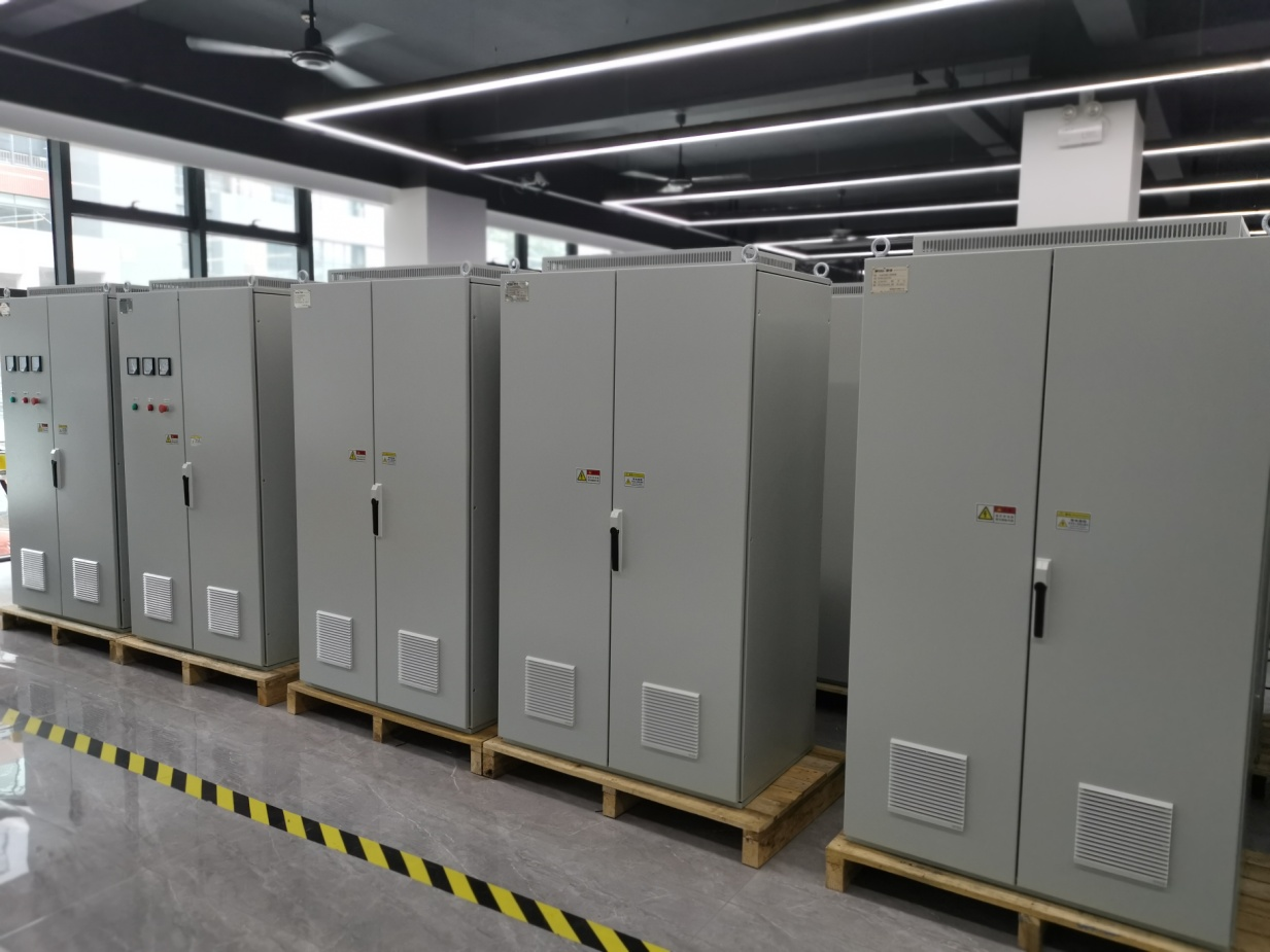 大朝山電站驗收代表在微特電氣車間檢查盤柜生產(chǎn)工藝以及微特電氣工程師對變頻控制柜進行上電試驗