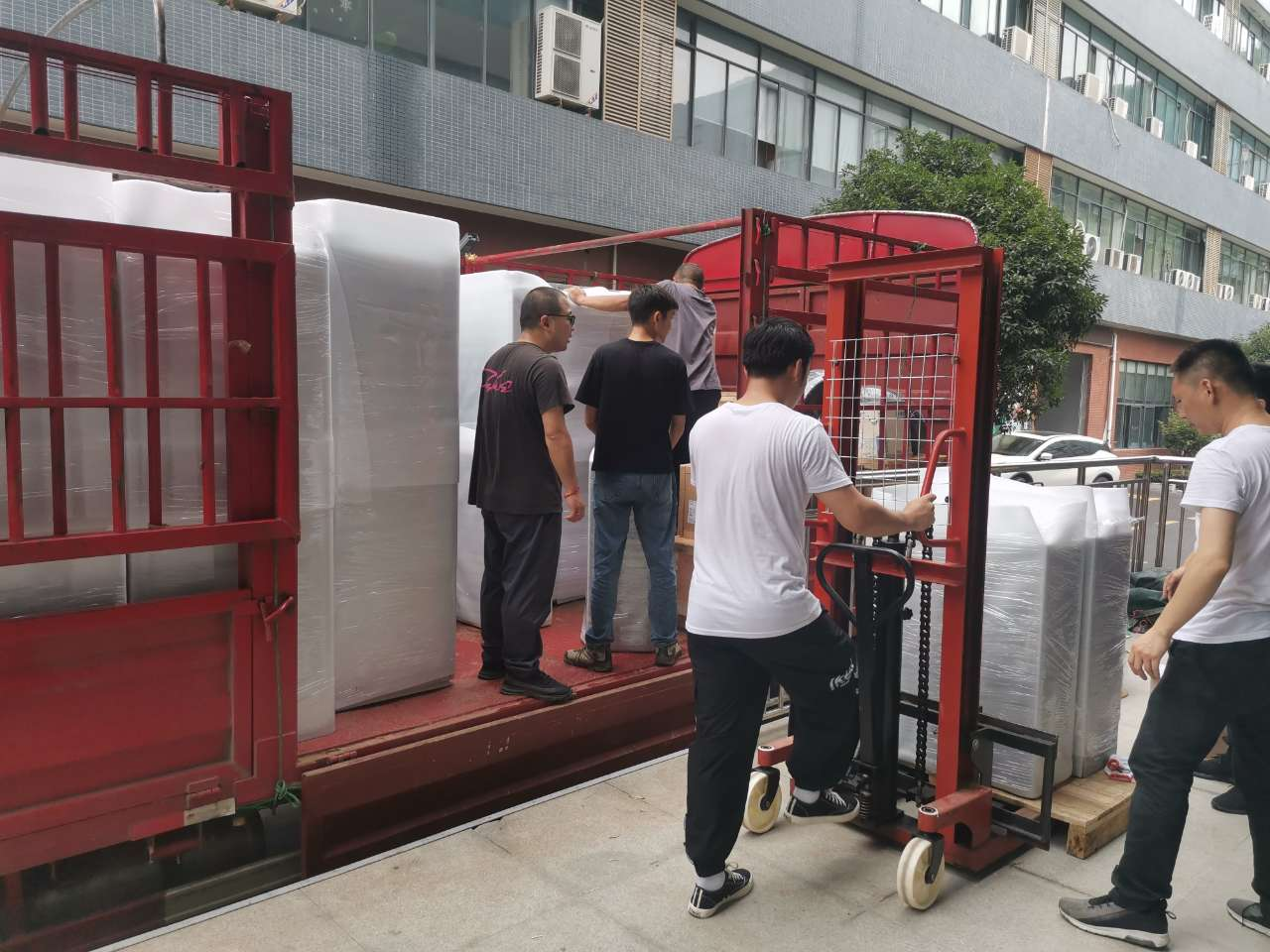 整裝待發(fā)的20余套電氣盤柜完成出廠前各項準備工作開始裝車