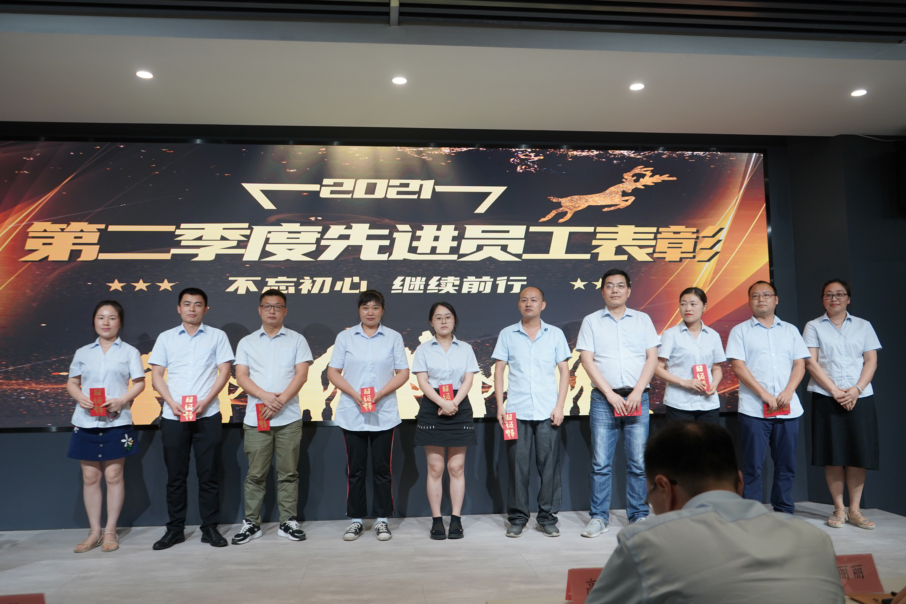 第二季度的每一個(gè)獎(jiǎng)項(xiàng)都凝聚了獲獎(jiǎng)?wù)邆兊母冻雠c汗水,七月的盛夏,帶著豐收的喜悅,承載上一季度的榮譽(yù),為這一季度的先進(jìn)者戴冠加冕。董事長(zhǎng)聶道靜和總經(jīng)理高鈺敏為獲獎(jiǎng)季度先進(jìn)人員頒發(fā)獎(jiǎng)金。