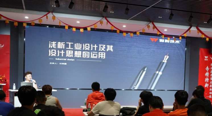 微特工業(yè)設(shè)計(jì)師付工就“工業(yè)設(shè)計(jì)及其設(shè)計(jì)思想的運(yùn)用”與同學(xué)們展開(kāi)了交流。付工用多個(gè)案例與同學(xué)們積極互動(dòng),生動(dòng)形象的向同學(xué)們介紹了工業(yè)設(shè)計(jì)的定義、設(shè)計(jì)流程及設(shè)計(jì)要素。