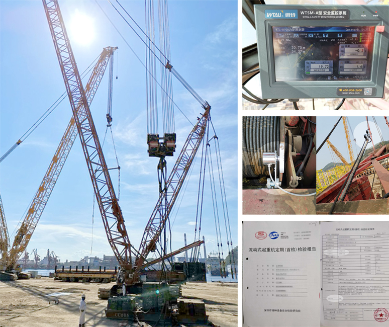 項(xiàng)目介紹:2019年1月,由微特技術(shù)有限公司為中海福陸重工有限公司所屬的多臺(tái)利勃海爾履帶吊“量身打造”的履帶吊安全監(jiān)控系統(tǒng)安裝調(diào)試完成并順利通過(guò)特檢單位驗(yàn)收。