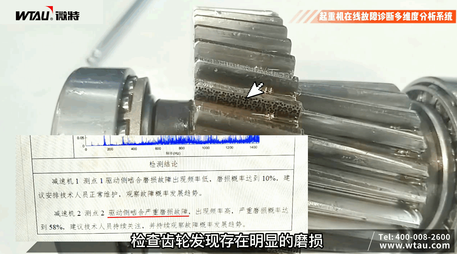 通過排查發(fā)現(xiàn)齒輪的側(cè)嚙存在嚴(yán)重的磨損,與診斷報(bào)告描述一致。系統(tǒng)再次準(zhǔn)確的分析出了減速機(jī)斷齒故障,我們?cè)僖淮斡脤?shí)踐測(cè)試并驗(yàn)證了 “微特故障診斷多維度分析系統(tǒng)”的有效性與準(zhǔn)確性!
