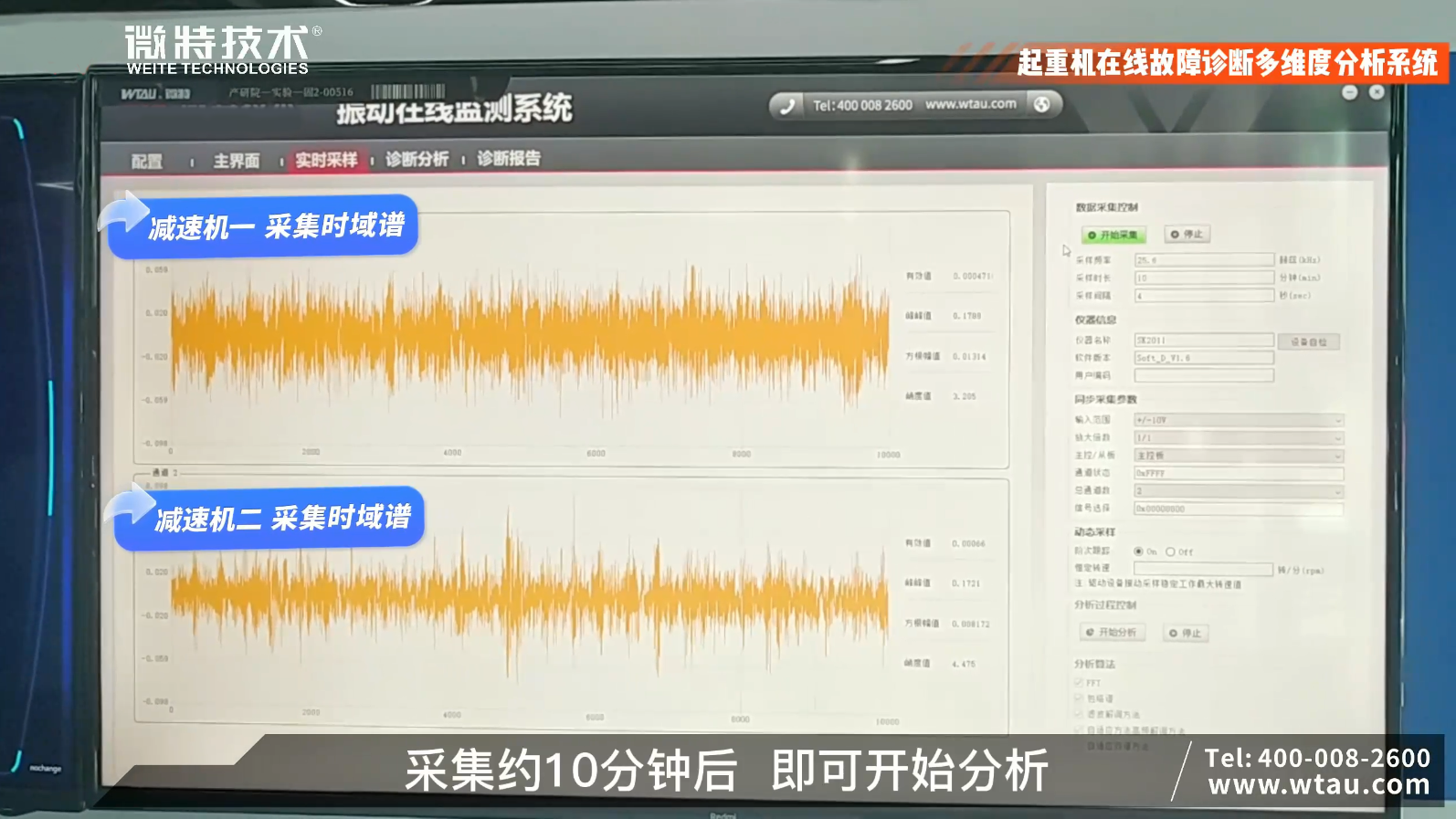 WT-MSAM綜合數(shù)據(jù)采集控制模塊實(shí)時(shí)采集多個(gè)傳感器的的振動(dòng)數(shù)據(jù),數(shù)據(jù)采集約10分鐘后即可開始分析。