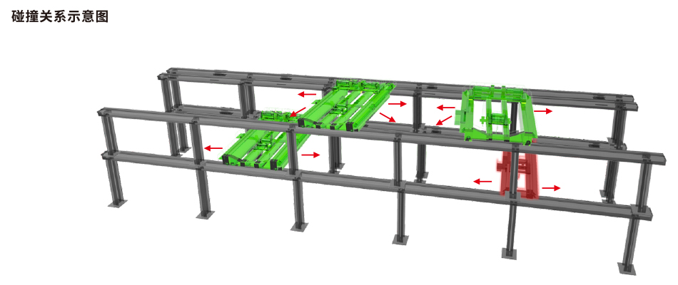 橋機工作時需要在軌道上來回移動吊運貨物,大部分廠房橋機軌道上都會采用多機配合作業(yè)。橋機之間難免會發(fā)生碰撞,而機械限位防撞預警距離太短,年久失修都會導致相鄰、上下層軌道之間橋機作業(yè)時發(fā)生碰撞,導致事故發(fā)生。