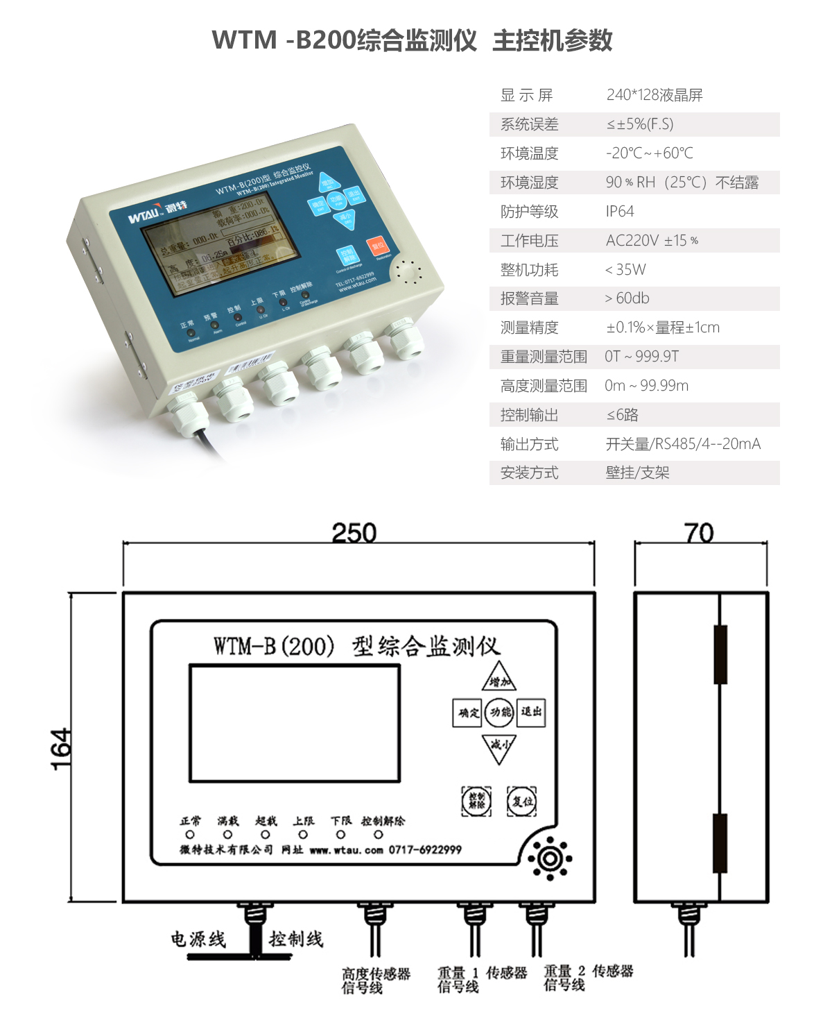 WTM-B200水電站綜合監(jiān)控儀融電子技術(shù)、微電腦技術(shù)、起重機(jī)械技術(shù)為一體,是一款綜合性能強(qiáng)大的多功能監(jiān)測(cè)儀表。