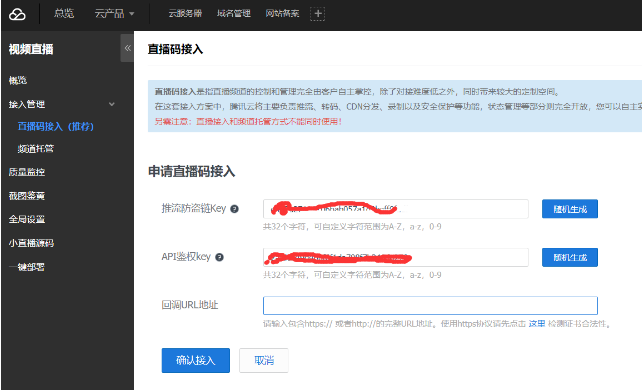 點擊【推流生成器】獲得直播推流地址,下面會具體列出【推流地址】,播放地址等,可以根據(jù)自定義的ID,生成一批推流地址,然后配置到服務(wù)器通道CDN地址中