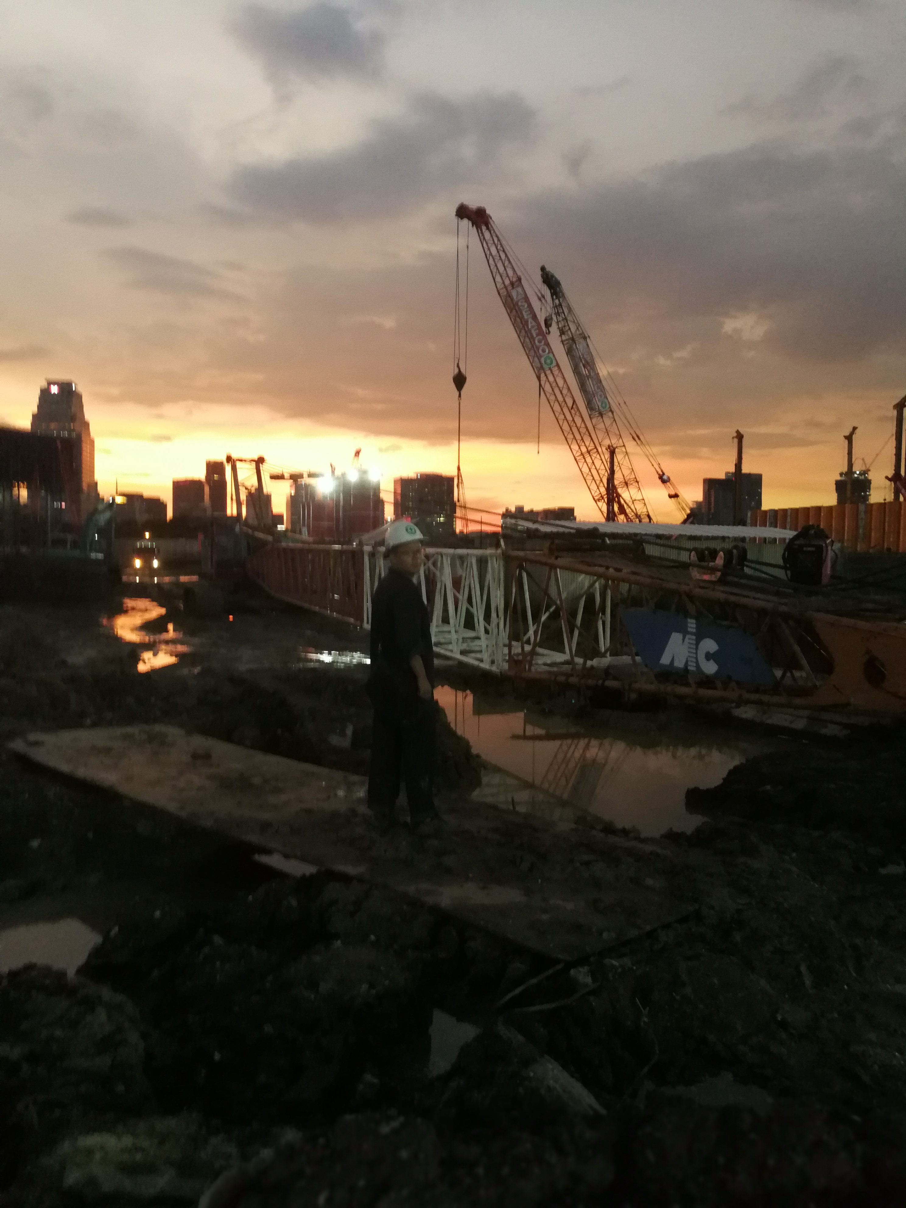北京時(shí)間晚上22點(diǎn)22分,曼谷時(shí)間晚上21點(diǎn)22分,出發(fā)去工地
