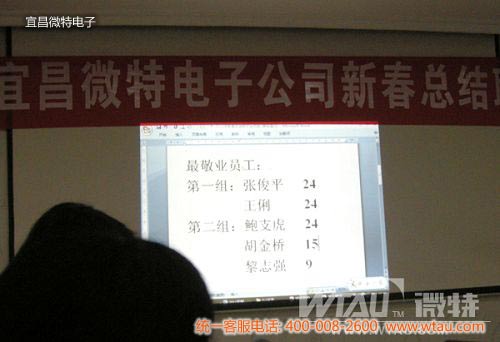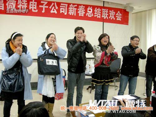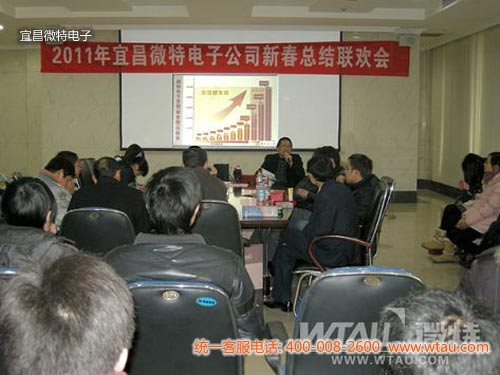 2011年1月30日,微特電子2010年總結(jié)大會(huì)暨新春聯(lián)歡會(huì)在宜昌高新技術(shù)開發(fā)區(qū)創(chuàng)業(yè)園勝利召開。公司領(lǐng)導(dǎo)與全體同仁共聚一堂共賀新春佳節(jié),總經(jīng)理聶道靜帶領(lǐng)各部門主管分別做了年度總結(jié)及簽署了新年工作目標(biāo)責(zé)任書。2010年微特電子在全體同仁的共同努力下創(chuàng)下了良好的經(jīng)營業(yè)績,展望2011年,微特人有信心創(chuàng)造出更加輝煌的業(yè)績。